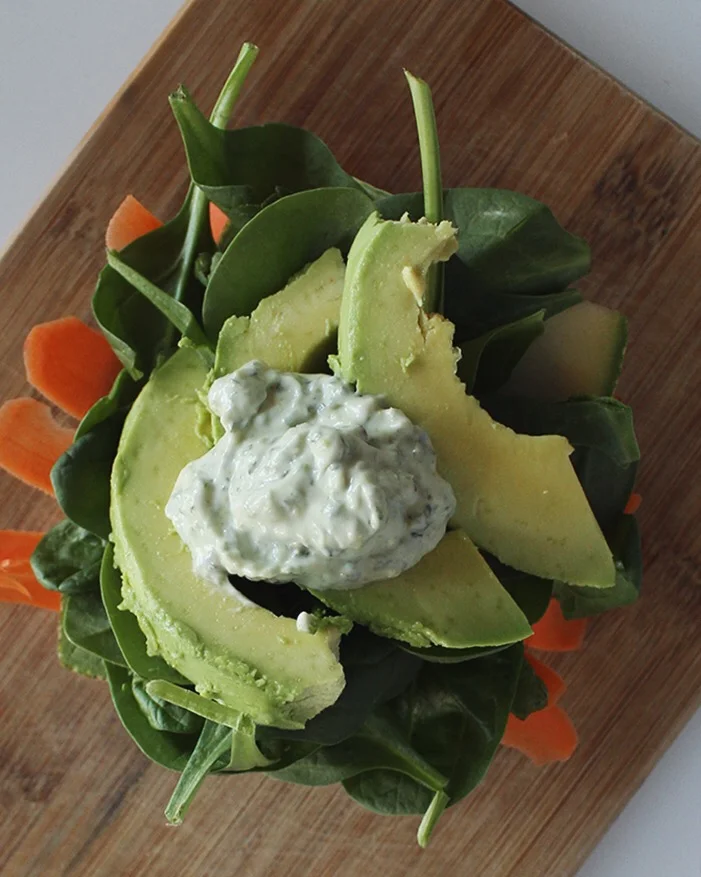 Tratando de comer un montón de verduras todos los días, mi truco más simple es agregar verde a lodo lo que como, y las verduras crudas también son mi combinación favorita, pero obvio se antoja tener ese toque de sabor que lleva tu comida al siguiente nivel, y mi favorito para esto es el pesto (aquí está la receta), lo puedo untar en un sándwich, como botana en una hoja de espinaca con queso de cabra ¡yum! o como aderezo para ensalada, solo tomo una cucharadita de pesto y agrego aceite de oliva para dar una consistencia más líquida ¡pruébalo!